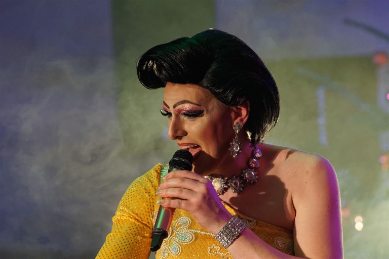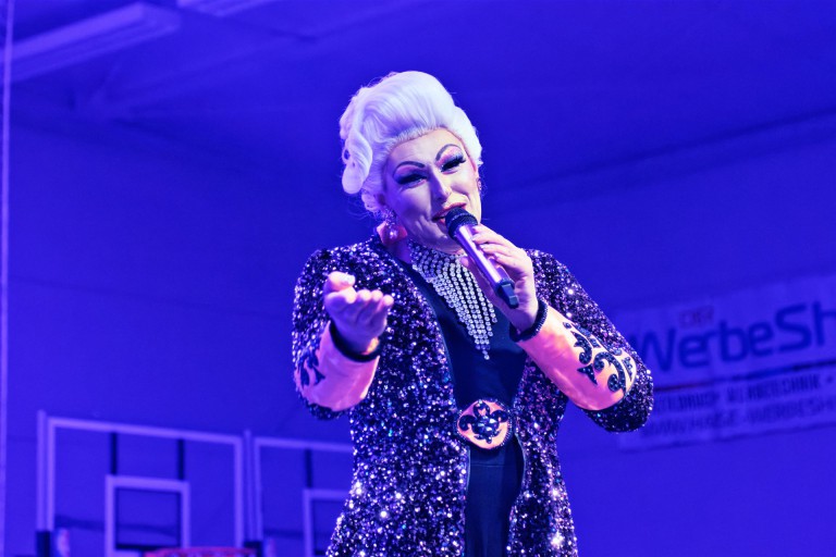 Schlagfertig, frech und frivol kommt sie auf ihren Highheels in hautengen Glitzerkostümen daher – flotte Sprüche und Live-Gesang – inhaltlich mit Ihnen abgestimmt – Sie werden begeistert sein.