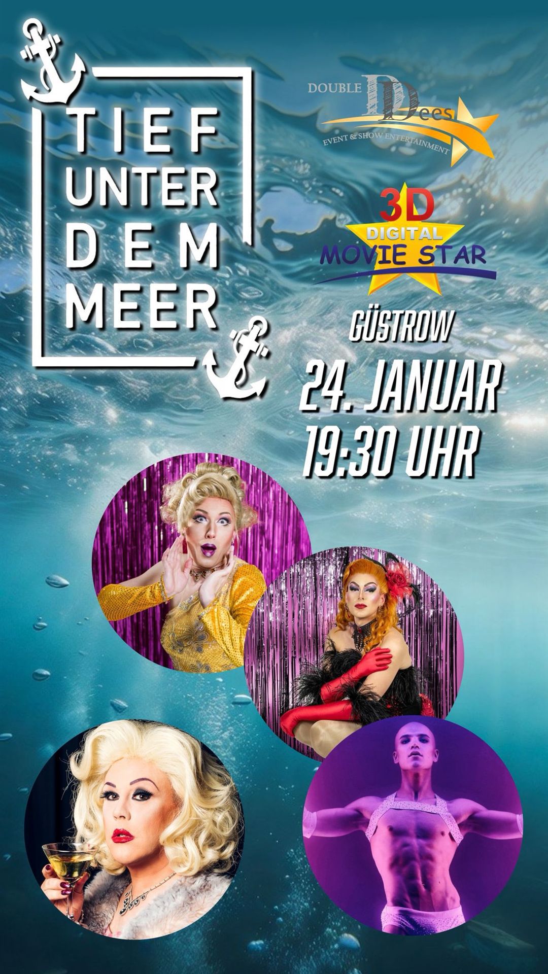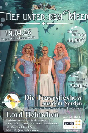 Die drei „Friends“, das sind Travestiekünstler Divia Jolie, bekannt durch verschiedene Shows und Veranstaltungen unter anderem im „Pulverfass Cabaret Hamburg“.
